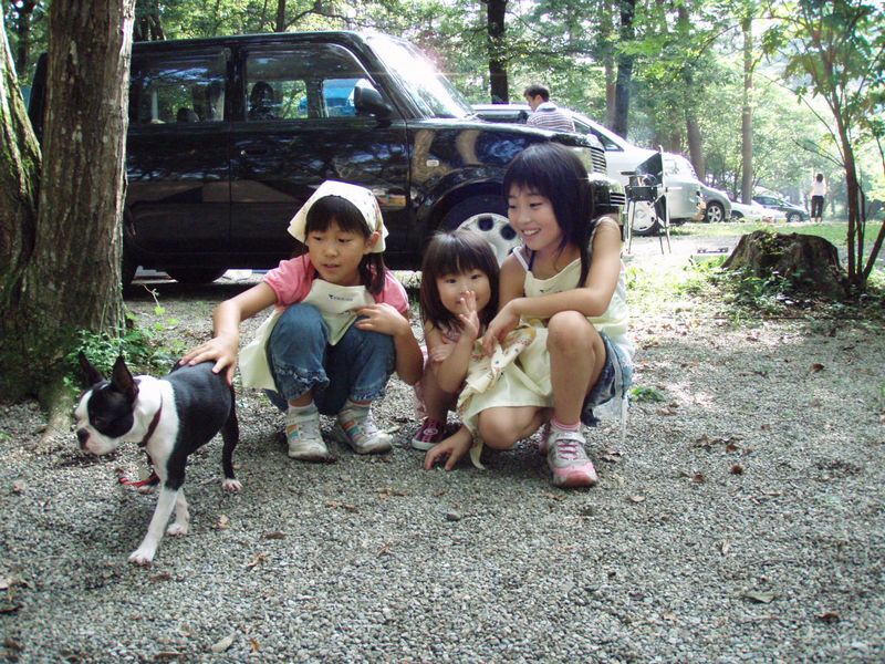 犬を連れていると、たくさんの子供達が寄ってきます。